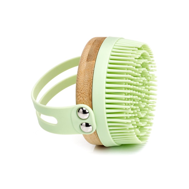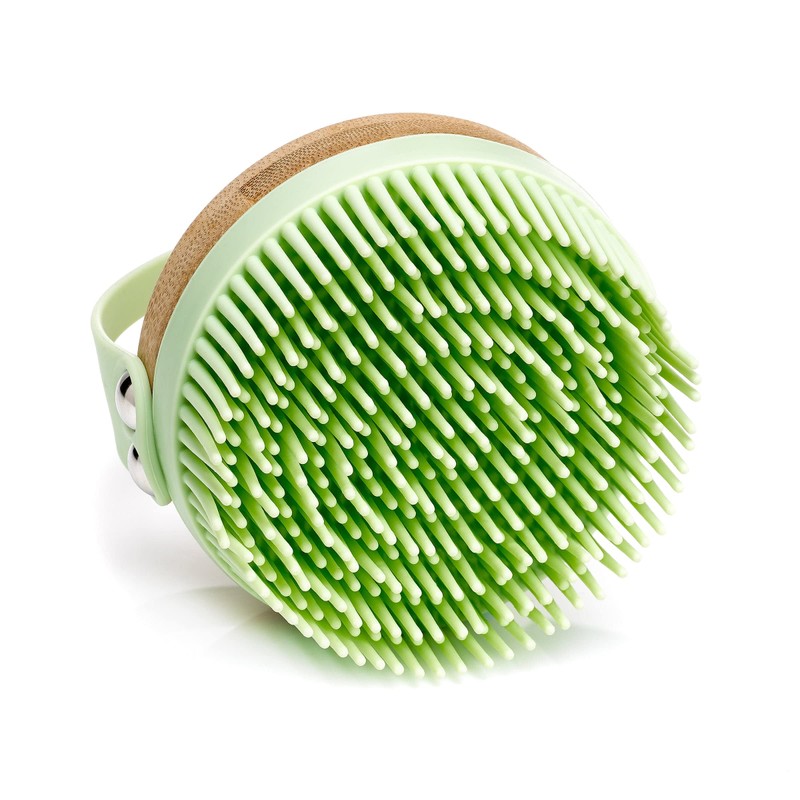 - Add a dollop of your favorite body wash to generate a rich, luxurious lather. A convenient hand strap is attached to an eco-friendly, attractive bamboo base.