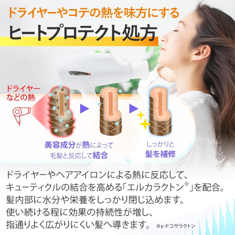 • The heat care ingredient Elcaracton (🍀-Dokosaracton) promotes moisture and moisturizing to damage damaged hair