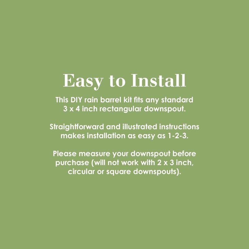 - DIY rain barrel kit fits any standard 3 x 4 inch rectangular downspout. Straightforward and illustrated instructions makes installation as easy as 1-2-3