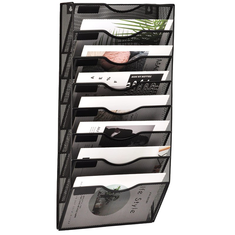 EASEPRES 8 Pockets Mesh Wall File Holder Organizer Office Hanging Magazine Rack, Black