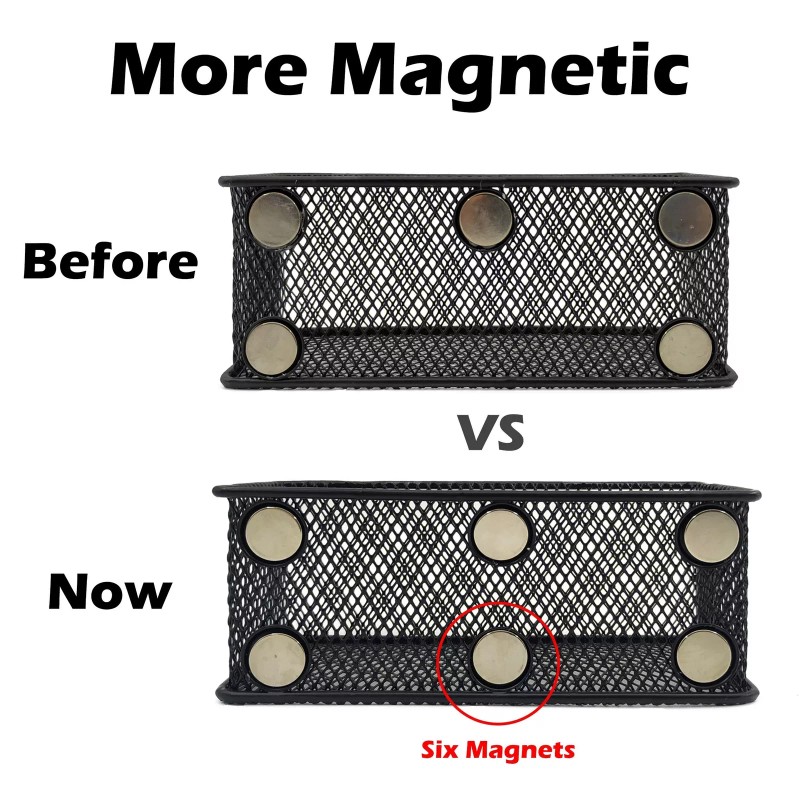 EASEPRES Magnetic Pencil Holder Set of 3 - Black Wire Mesh Storage Baskets Or...