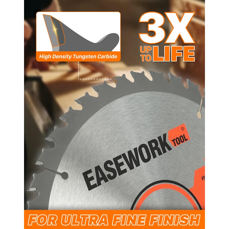 - 【Carbide Teeth for Clean & Crisp】 - EASEWORK ultra-fine finishing saw blades feature premium carbide teeth for clean, precise cuts without burn marks. Designed for smooth, stable performance, they cut through softwood, hardwood, laminate, plywood, chipboard, panels, FRP, MDF. The super thin kerf minimizes waste and enhances cutting efficiency.