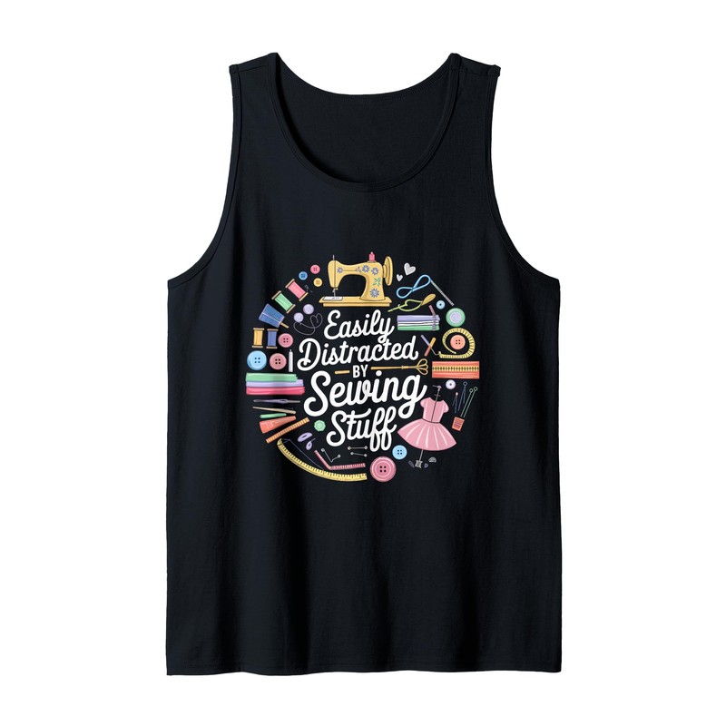 Easily Distracted by Sewing Stuff Funny Sewing Quilting Tank Top