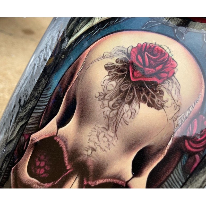 East Coast Vinyl Werkz - Skull & Rose w/Wooden Trim - 1pc - Fuel Tank Decal for Harley Davidson Sportsters Choppers Bobbers Honda Shadow Rebel Fury