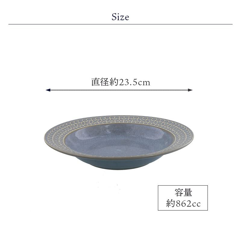 - Product Details: Size: Diameter 9.3 inches (23.5 cm) x Height 1.7 inches (4.4 cm) (There may be differences depending on the product); Weight: Approx. 18.2 oz (519 g) (may vary depending on the item); Capacity: Approx. 32.9 fl oz (862 cc); Material: Porcelain; Texture: Glossy Country of Origin: Japan (Mino ware)