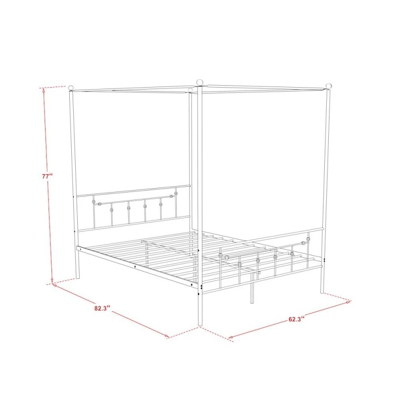 - ATQCBLK Anniston Canopy Bed with Deluxe Style Headboard and Footboard - Luxurious Metal Frame in Powder Coating Black # QUEEN METAL BED FRAME DIMENSIONS: The dimensions of the canopy bed frame are: Length: 82.3; Width: 62.3; Height: 77.