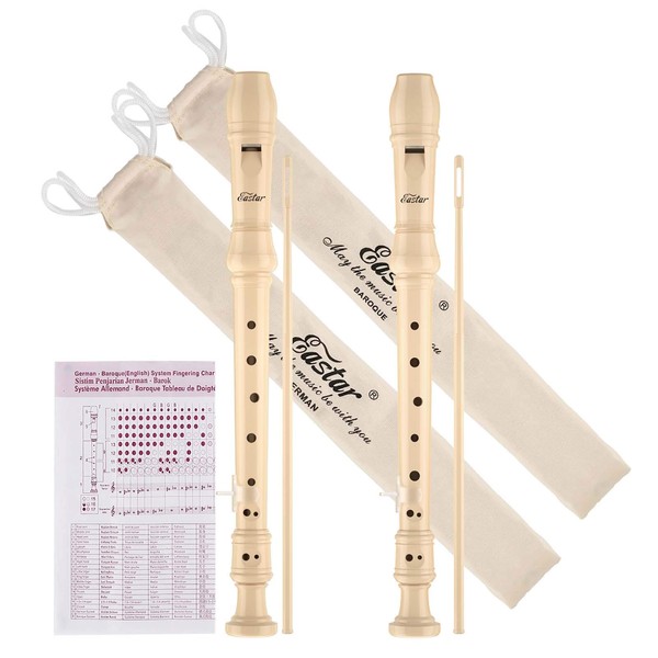 Eastar Soprano Recorder Set of 2, Baroque German Fingering C Key Recorder Instrument for Kids Beginners, 3 Piece with Cleaning Kit, Thumb Rest, Cotton Bag, Fingering Chart, ERS-22B, School-Approved