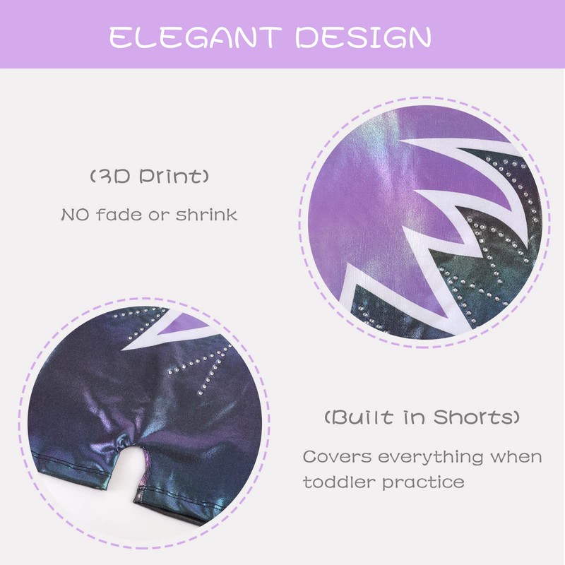 - Gymnastics Leotard with Short: Built in shorts don't ride up and covers everything when toddler bends or does a cartwheel. Suitable for babies, kids, toddlers, little girls,big girls's gymnastics, dance, tumbling, ballet, yoga, team uniform,skating, swimming,Christmas, Halloween, birthday gift, etc.