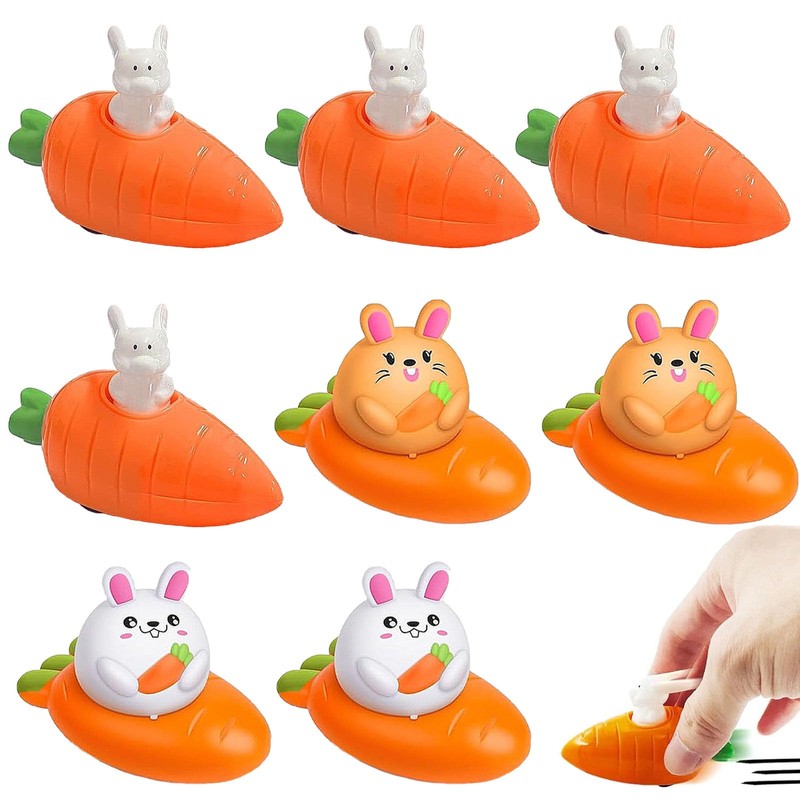 Easter Bunny, Easter Gifts Children, Pack of 8 Easter Gifts Children, Wind-Up Rabbits with Carrot, Rabbit Easter Decoration, Funny Wind-Up Toy Easter Bunny, Easter Gift for Children Boys Girls