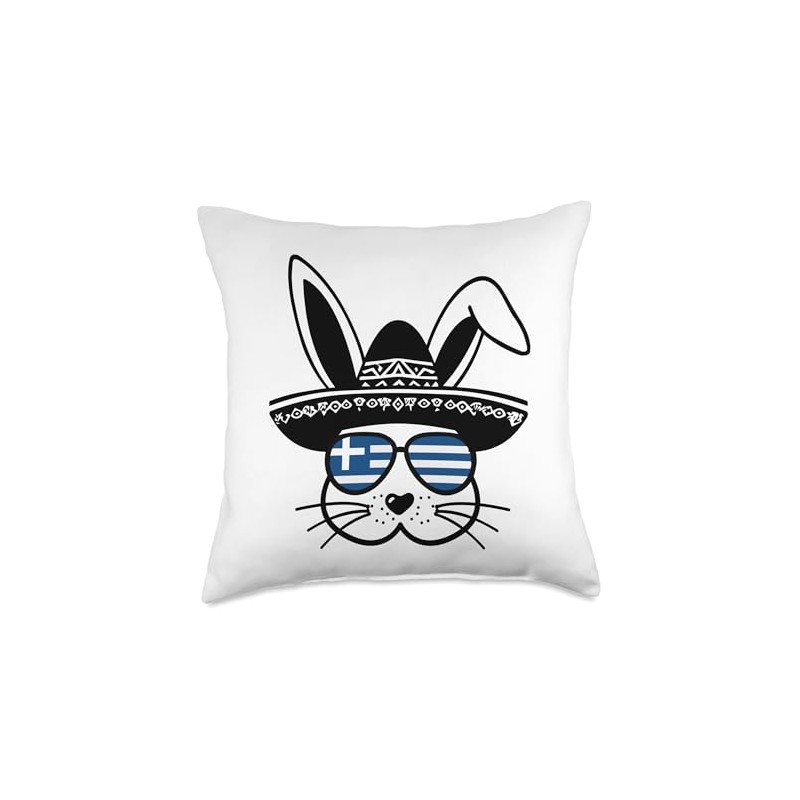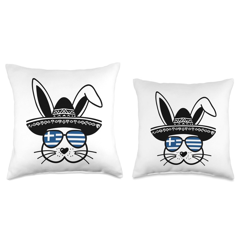 Easter Bunny Rabbit Greece Flag Greek Easter Holiday Throw Pillow