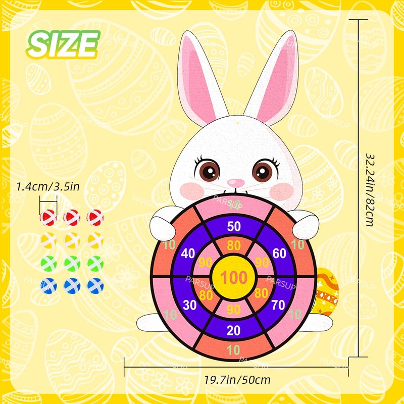 - 【What You Get】The package includes 1 Easter theme dart board, 12 stick balls, and 1 sticky hook, giving you everything you need to start playing right away. The dart board measures 32.24in*19.68inch, making it the perfect size for outdoor activities and party games.