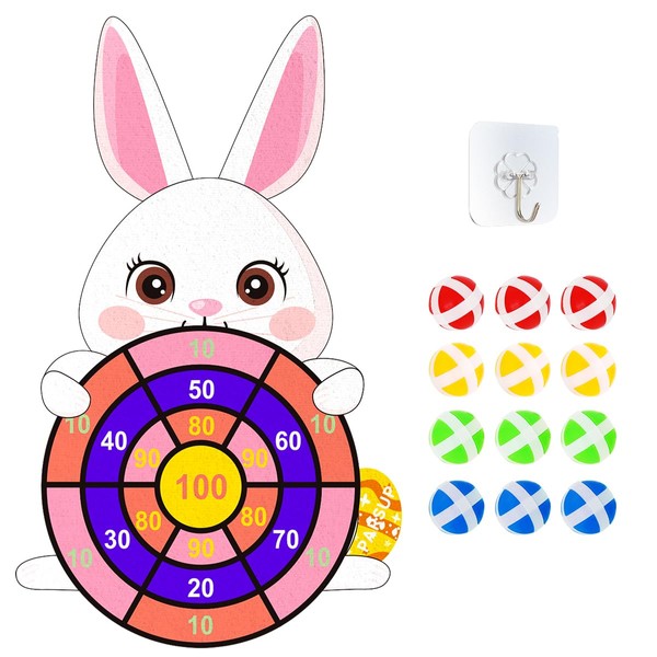 Easter Dart Board Game Set, Cute Bunny Party Board Games with 12 Stick Balls, Happy Easter Indoor Outdoor Games for Kids Ages 4-8, Party Games Yard Toys