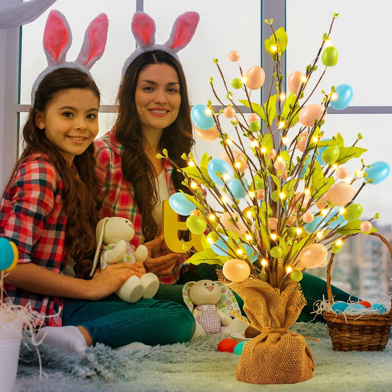 - EASTER DECORATION: The easter eggs table tree light are made of easter eggs, linen-wrapped rhizomes, which looks like a work of art, the branches are non-conductive and very safe.