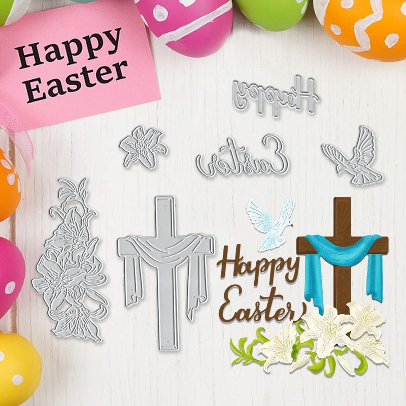 - 🐥 Good Easter Pattern Design 🐥 The metal Easter die cuts are designed with flowers, cross, easter words, pigeon, which can enrich your Easter topic decorative style.