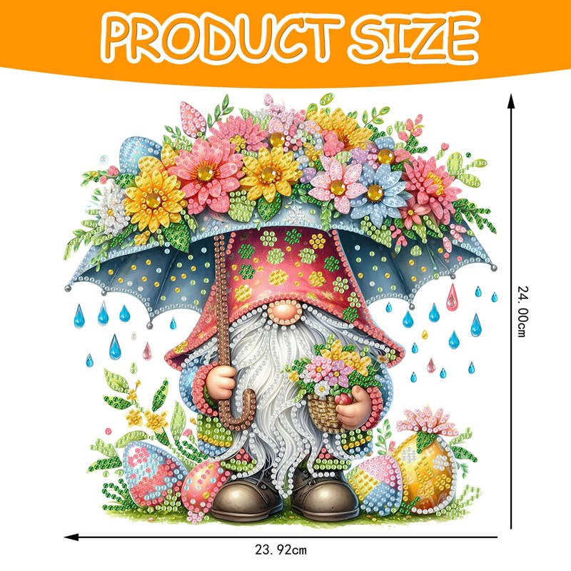 Easter Gnome Eggs and Flowers Diamond Painting Desktop Ornament Kit, 5D DIY Acrylic Crystal Special Shaped Tabletop Diamond Art Home Decor for Adult (LL117)