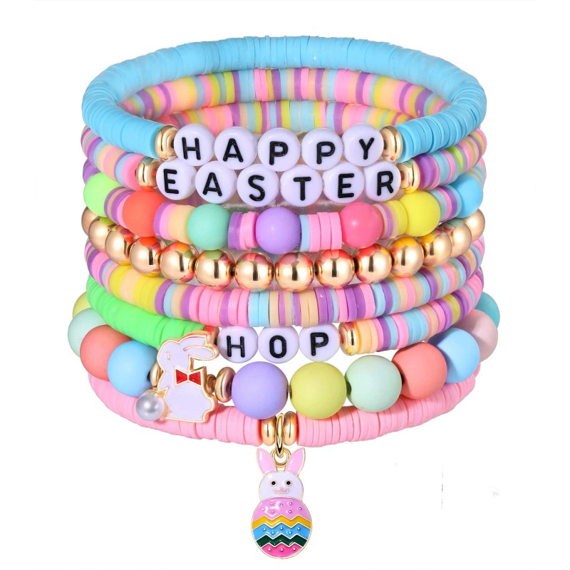 Easter Heishi Beaded Stretch Bracelets Accessories Handmade Festival Bunny Egg C