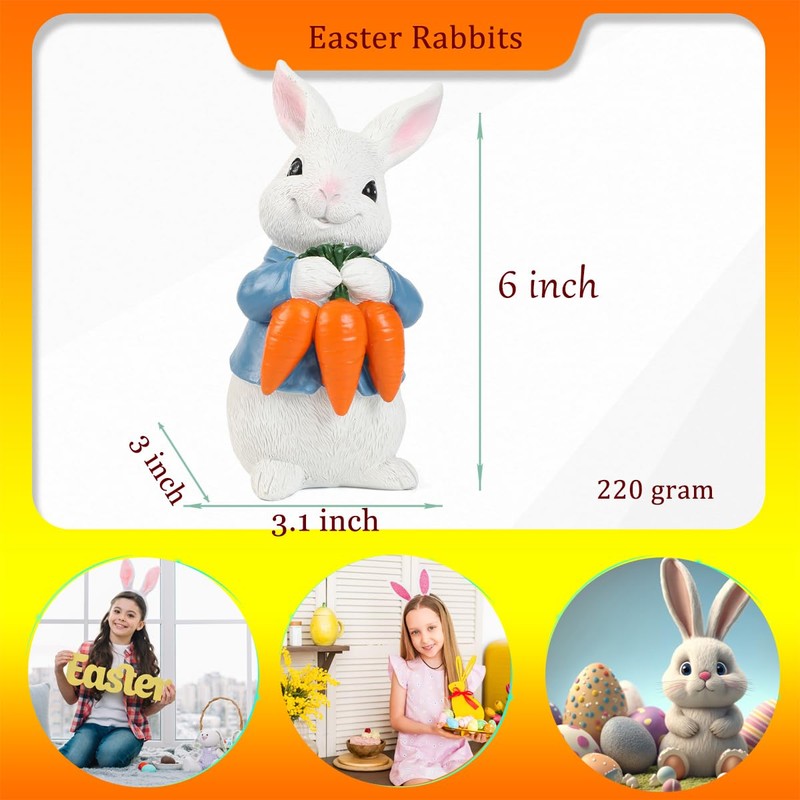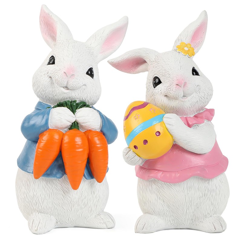 - Charming Decor: Brighten up your space with these resin bunnies, ideal for creating a cheerful springtime ambiance on any tabletop, perfect for adding a pop of whimsy to any tiered tray, mantel, or tabletop display. Versatile Display - These bunny figurines can be arranged together for a statement centerpiece or placed separately to spread Easter joy throughout your home.