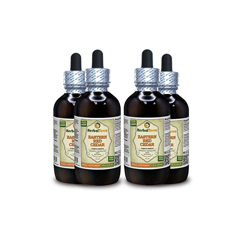 Eastern Red Cedar (Juniperus virginiana) Tincture, Dried Chips Liquid Extract (Brand Name: HerbalTerra, Proudly Made in USA) 4x4 fl.oz (4x120 ml)
