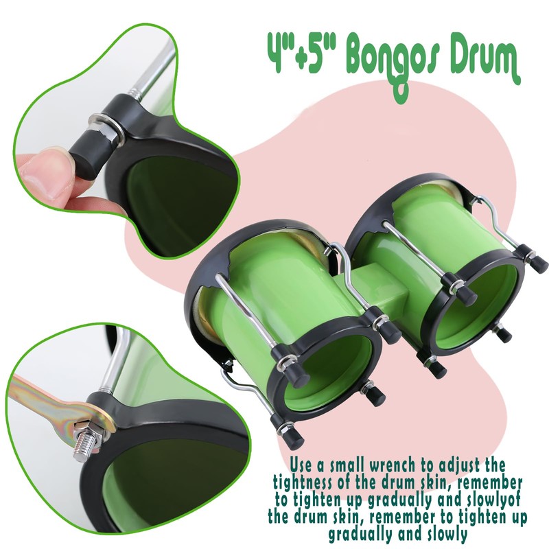 EastRock Green Bongo Drum 4” and 5” Set for Adults,Beginners,Percussion Bongos Drum With Tuning Wrench(Green)