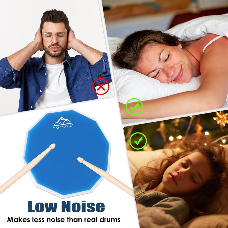 • Noiseless :Afraid to bother your neighbors when you practice playing the drum.Eastrock Drum Practice Pad will be a perfect solution! It won't make too much noise, but you can clearly hear the sound when you are practicing. So you can use this product anytime, anywhere without being heard by others