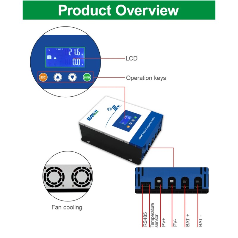 EASUN 80A 100A MPPT Solar Panel Regulator Battery Charge Controller 12V 24V 36V 48V - ICharger-MPPT-10048