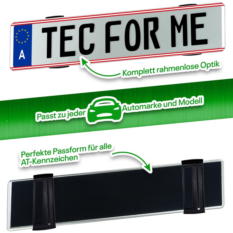 NEW! Easy Clip frameless number plate holder - elegant number plate holder with perfect fit and secure hold - easy installation without drilling - high-speed safe