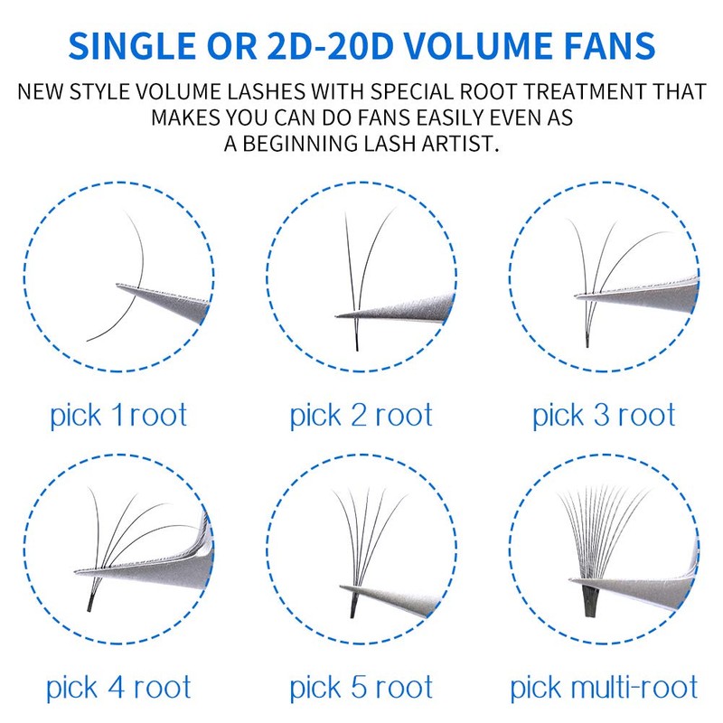 - 3.ADVANTAGES: There is appropriate glue to the root of the self fanning lashes. No thick roots, no loose roots, no shrinking fan, use tweezers to pick the appropriate eyelashes to bloom automatically, saving grafting time,which will give customers a more comfortable roller lash extension experience.