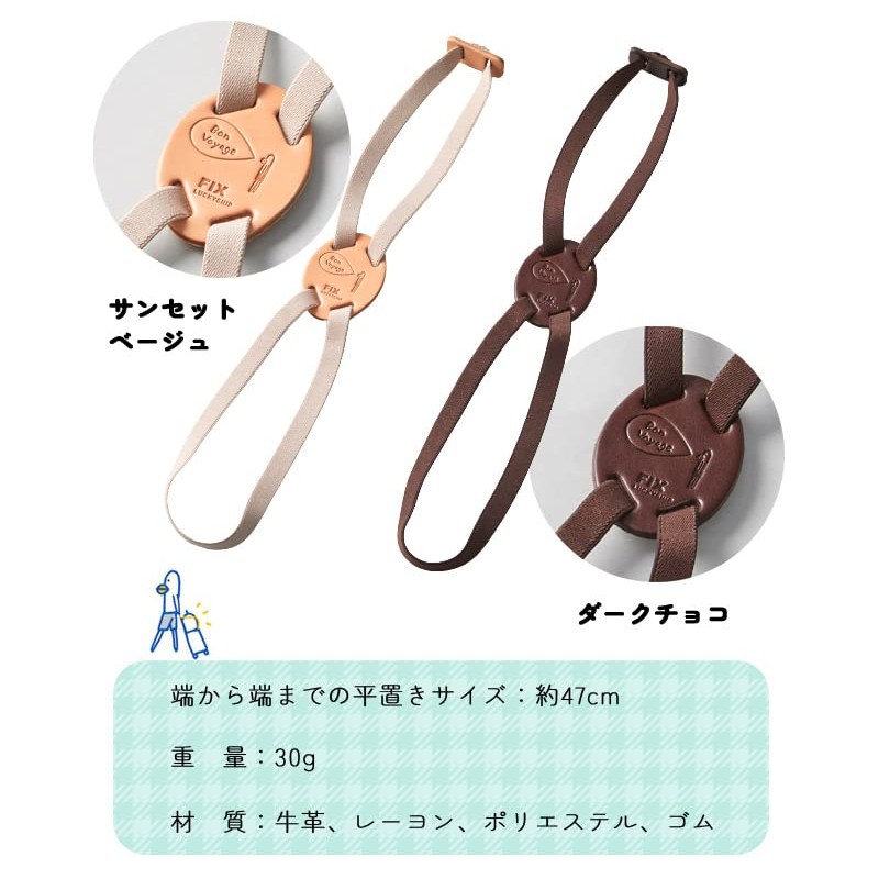 Easy Fix Luggage Belt, Easy Fixing Band, Egg-Shaped, Luggage, Travel, Carry-on Luggage, Convenient Goods, Genuine Leather, Made in Japan, Sunset Beige