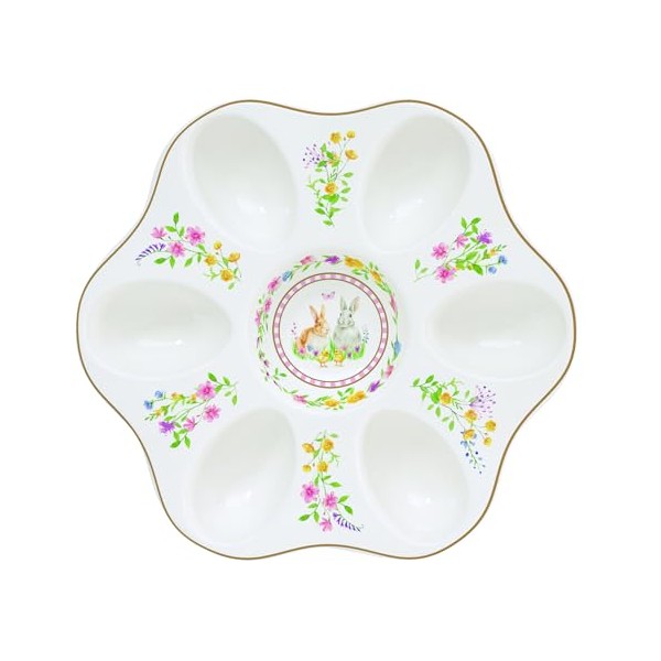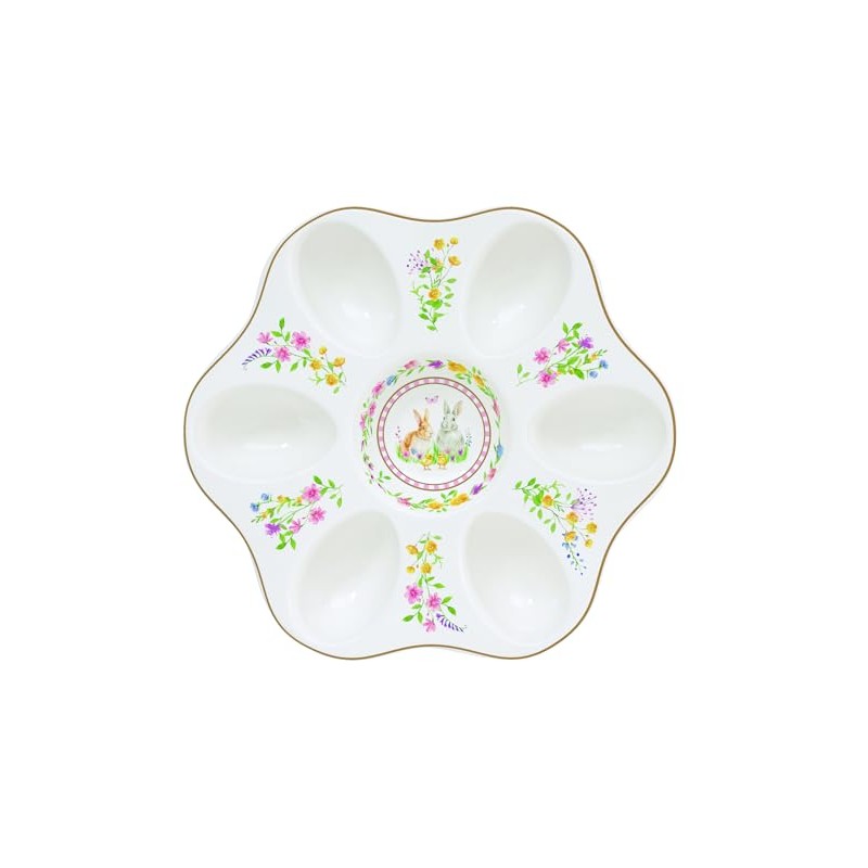 - Design: elegant egg plate made of fine porcelain with scalloped edge and golden border, 21 cm diameter