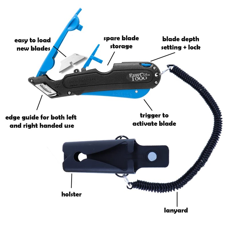 EasyCut 1000 Safe Retractable Box Cutting Utility Knife, Blue, 09780