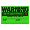 - CLEAR MESSAGE: Features prominent 'Unauthorized Parking' warning with instructions to move vehicle to avoid towing expenses