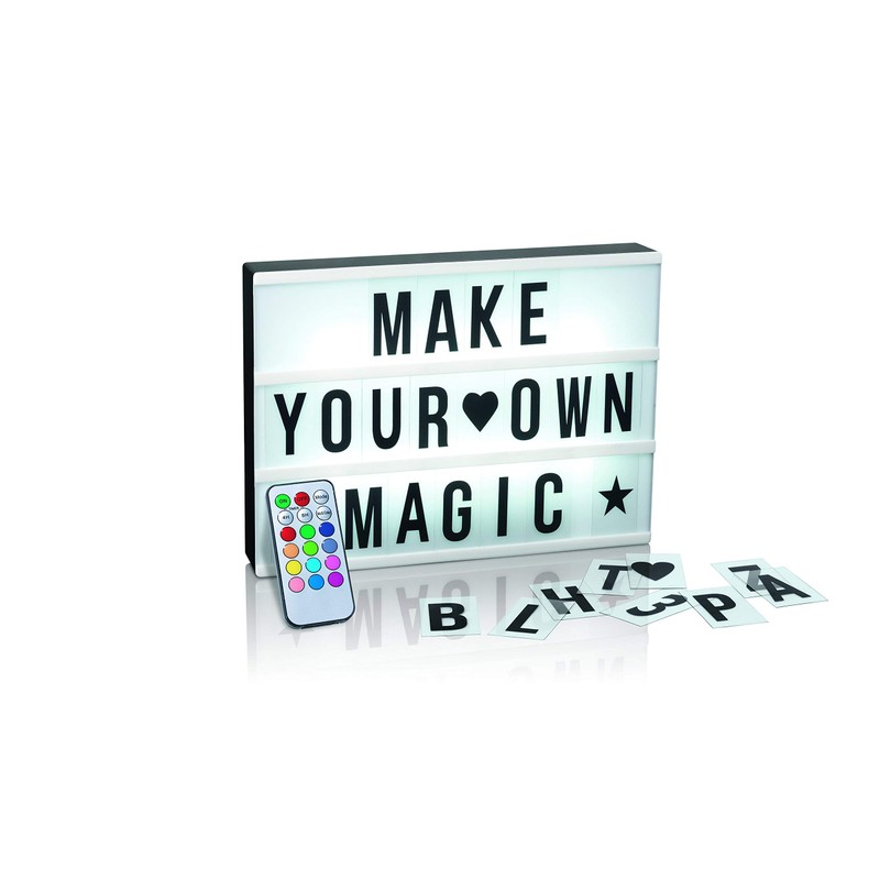 - LIEFERUMFANG - Im Lieferumfang enthalten sind 173 Buchstaben und Symbole und eine Infrarot-Fernbedienung. Die Ma?e des Leuchtkastens betragen: (B/H/T) 30,2 cm x 22 cm x 4,5 cm.