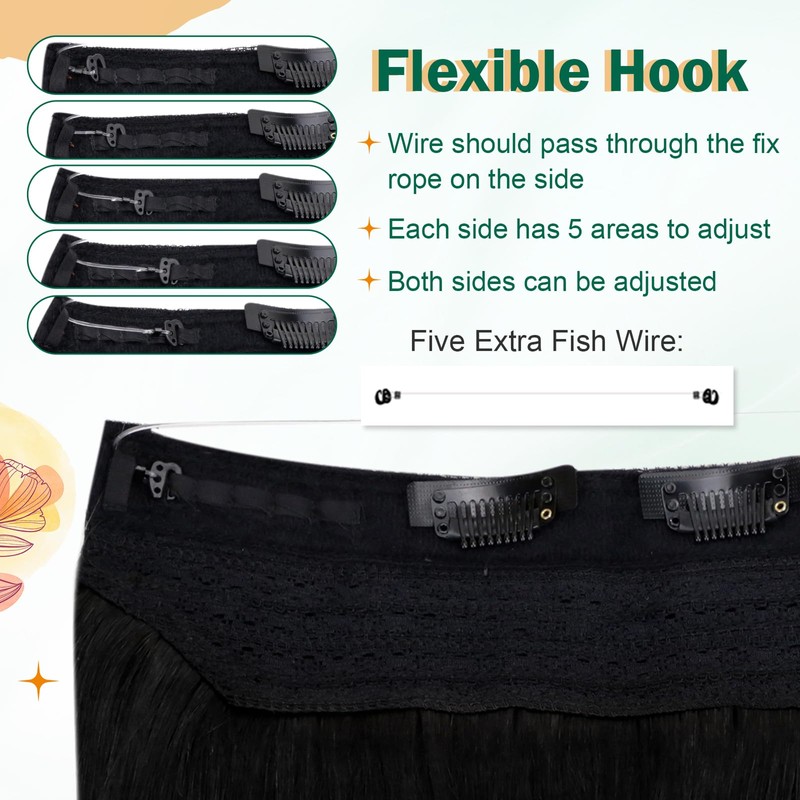 - Ease of Application- Easy to wear at home in just minutes, our wire extensions come with 6 adjustable hooks and 2 removable clips to adjust to your head size and hold securely in place . Suiting for different head sizes. No salon visits needed