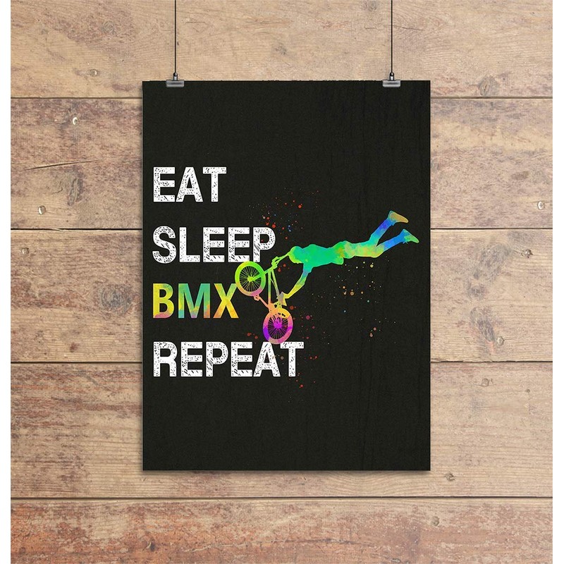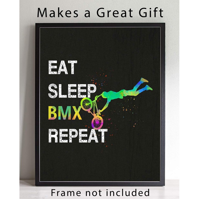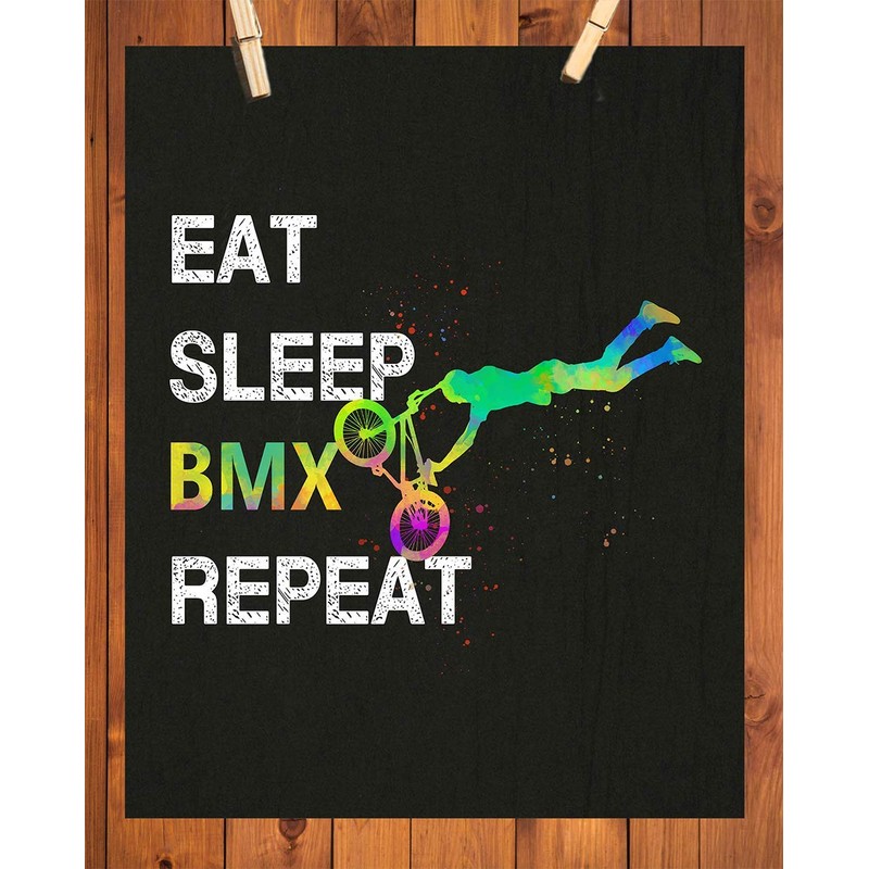 Eat Sleep BMX Repeat Quote Wall Art, 11"x14" Unframed Poster Print, Ideal for...