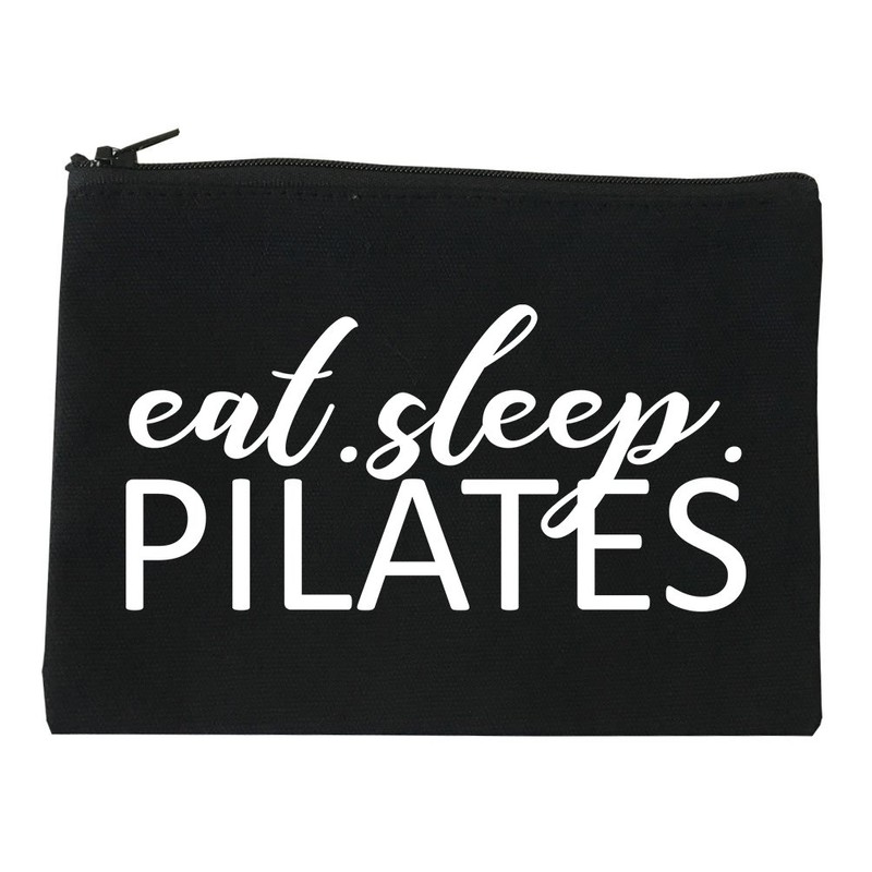 Eat Sleep Pilates Yoga Cosmetic Makeup Bag by Fashionisgreat. This makeup bag is made of cotton canvas available in 3 different sizes: SMALL (7 x 5 inches) | MEDIUM (9 x 5 inches) | LARGE (10 x 7 inches)