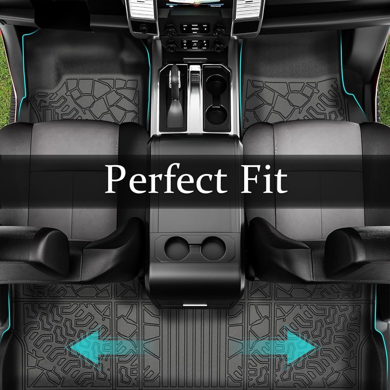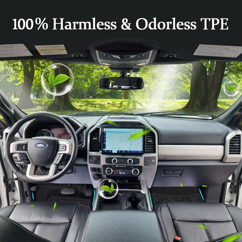 - 2. Custom Fit: Use 3D Laser Scanning Tecnology Ensure a Customized Edge to Edge Super Fit Design for Your Ford F250 Vehicles. Made of 100% TPE Material in One-piece Injection Moulding Process, Which is Sturdy and Durable, Odorless, No curl or Deform, Match the Original Floor Contour Perfectly.