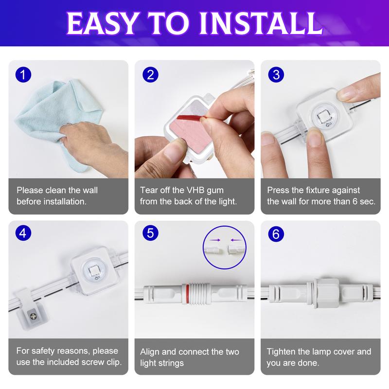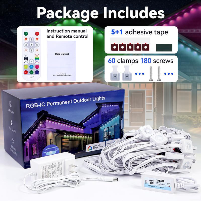 eaves light,Permanent Outdoor Lights 100ft, Smart RGB IC Eaves Lights With 72 Scene Modes, IP67 Outdoor Lighting For Holiday Decorations, Party, 60LEDS