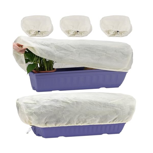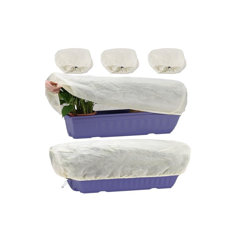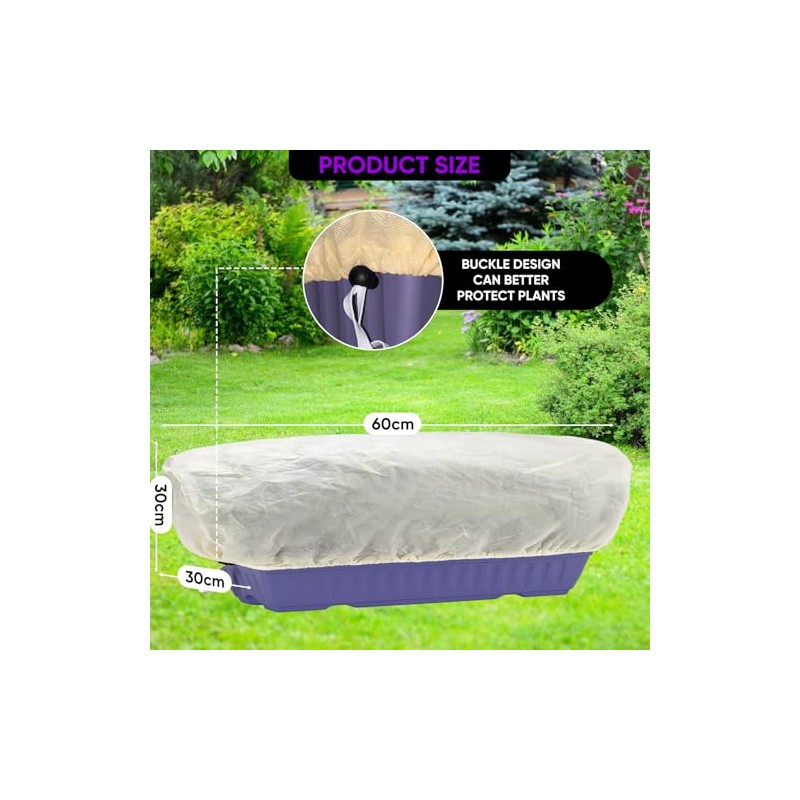 - Plant Protection Cover, Winter Frost Cover with drawstring and locking clasp, 60 x 30 x 30 cm-3 Pieces, For Rectangular Planting Boxes