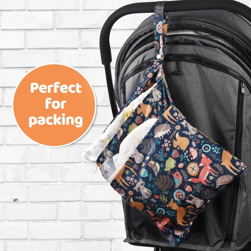 eaxin 2pcs Cloth Diaper Wet Dry Bags Waterproof Reusable with Two Zippered Pockets Travel Beach Pool Daycare Soiled Baby Items Yoga Gym Bag for Swimsuits or Wet Clothes-Animal