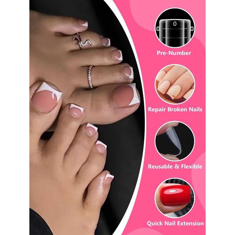 - Sturdy Toenail Extension FormsReusable toenail molds are made with high quality, which is strong, tough, and reusable, providing you with a wonderful nail art experience that lasts.This artificial nails forms protective sleeve has a small handle on both sides, which is convenient for constructing gel nail extension nails, and will not stick to your hands, and can be easily removed after application.