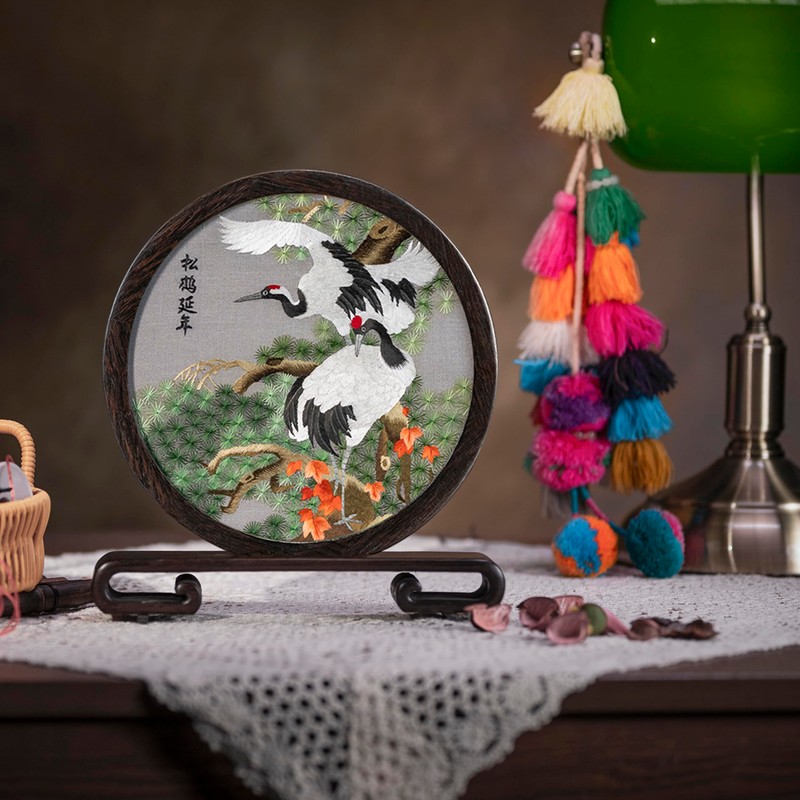 - 【Auspicious Meaning】In China, the crane's upright standing posture and graceful flying posture have always been loved by people and convey beautiful meanings. For example: noble conduct, longevity and peace, pursuit of freedom, happiness and contentment. This embroidery work is called Songhe Yannian. Both pine trees and cranes represent the meaning of longevity. It is very suitable as a gift for elders to wish them a birthday or to wish them longevity.