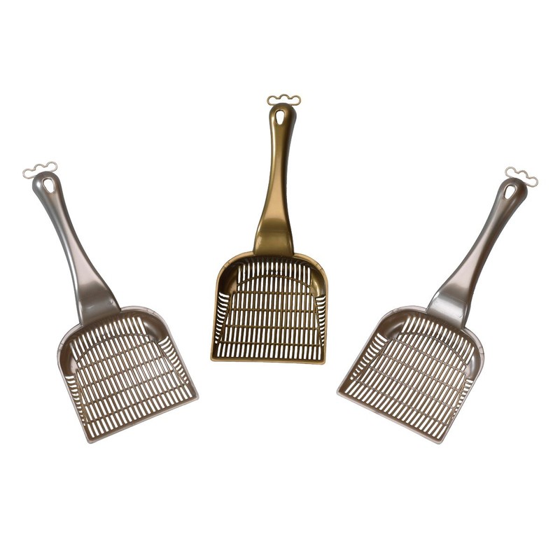 Plastic cat litter spoon in assorted colours.