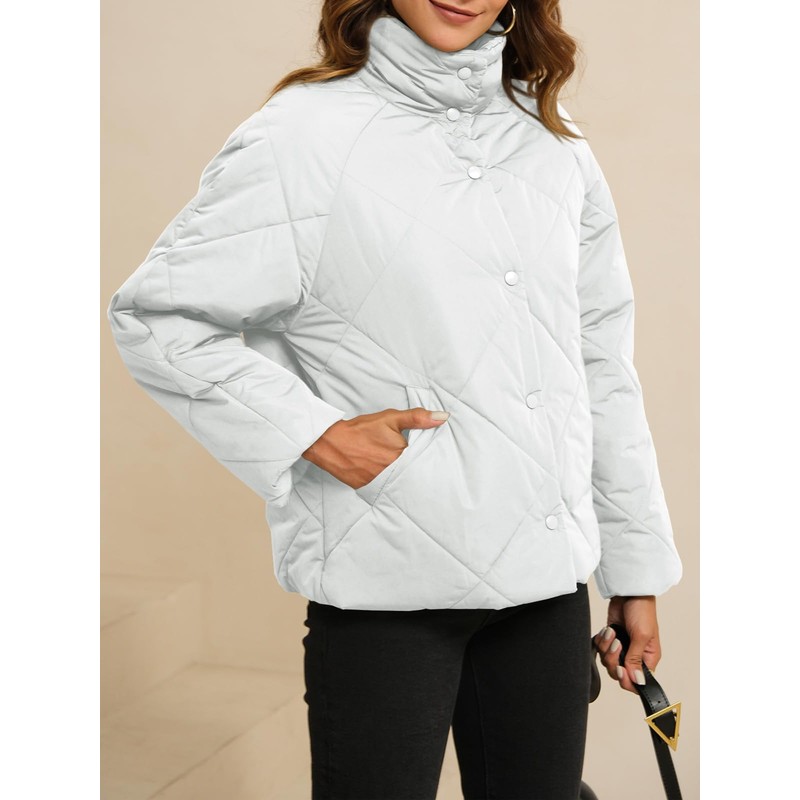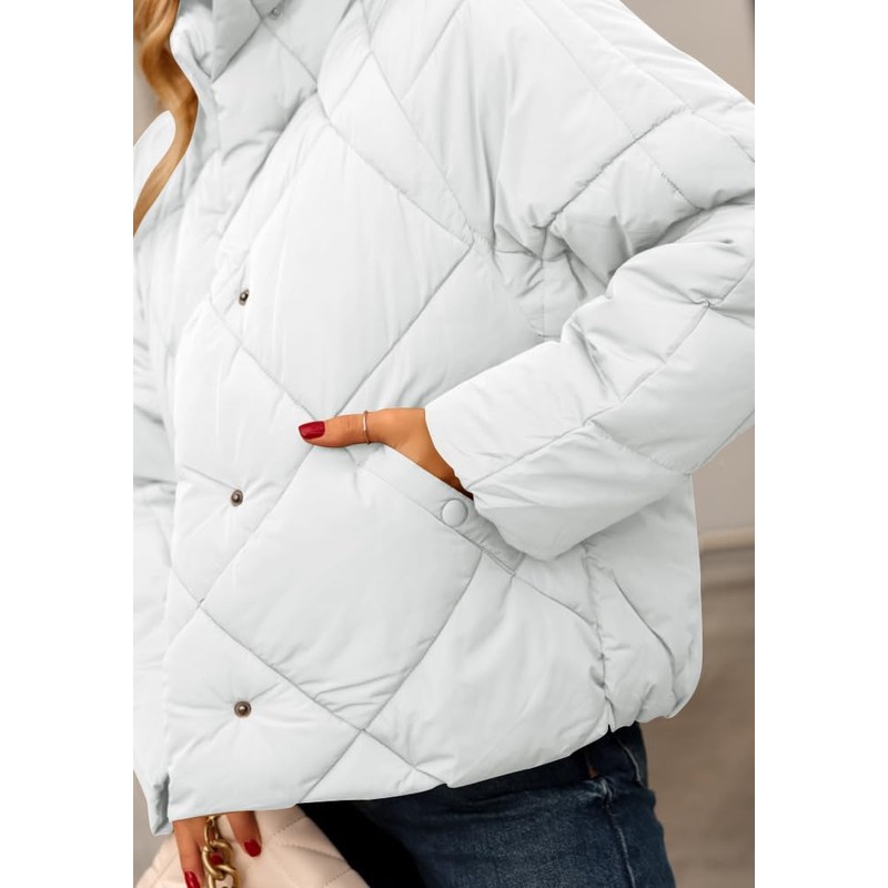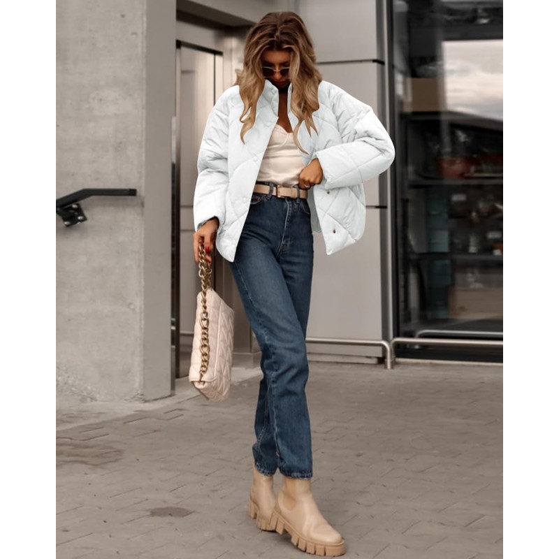 - Design: Button down closure, two hand pockets, loose fit, stand collar, long sleeve, drop shoulder, soft and warm padded, solid color, oversized look, elasticated cuffs in a puffer style.