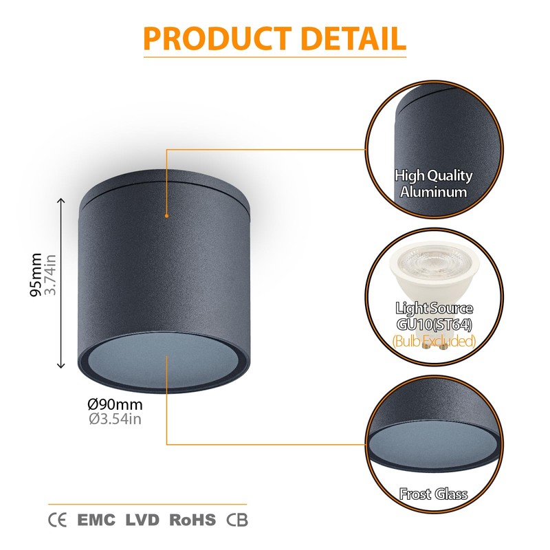 - Suitable for many applications: this ceiling mounted light is the ideal replacement for recessed lights and spotlights. The simple, unobtrusive anthracite cylinder model offers an ideal lighting solution for living room, bedroom, kitchen, hallway, dining room, gallery, hotel, exhibition centres and many other indoor and outdoor spaces.