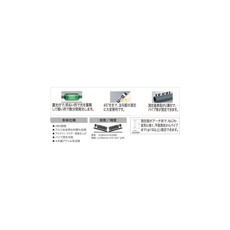 • Sensitivity: 0.0286° (0.50 mm/m) = 0.0286° / Accuracy: ±0.1432°