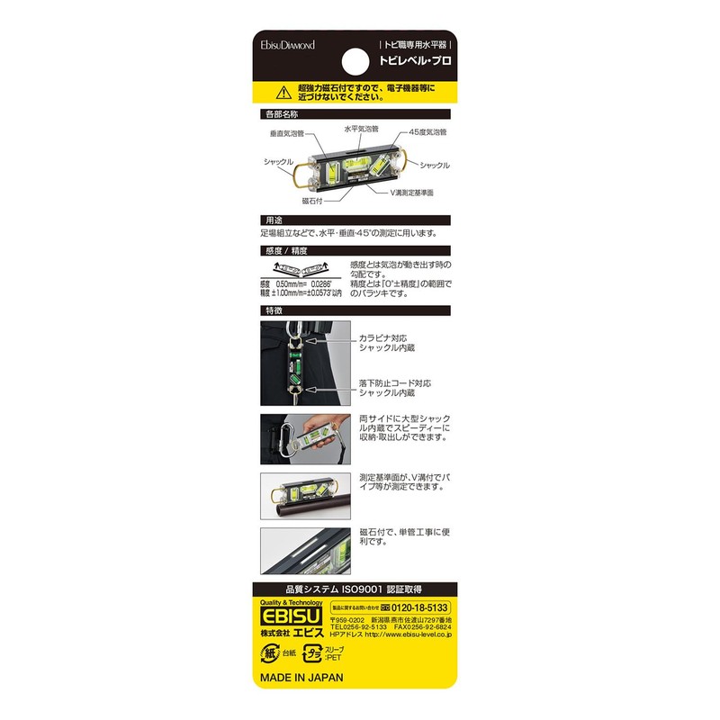 エビス(EBISU) 水平器 トビレベル・プロ ED-TBPB 足場組立用 ブラック/グリーン