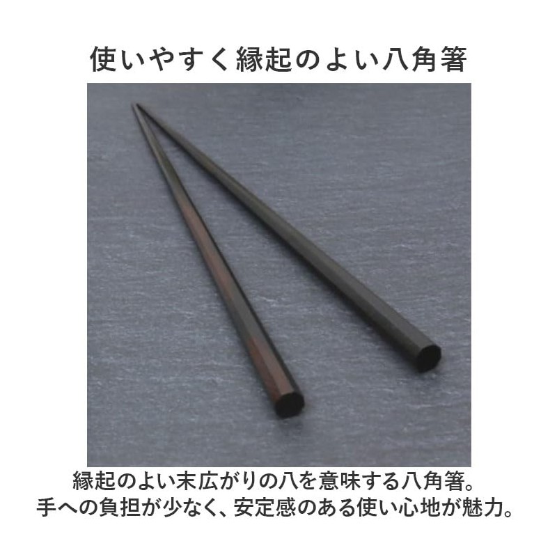 - Natural wood and moisturized coating make you look beautiful. Enriches your dining table with reliable quality. Introducing Ebony Octagonal Chopsticks