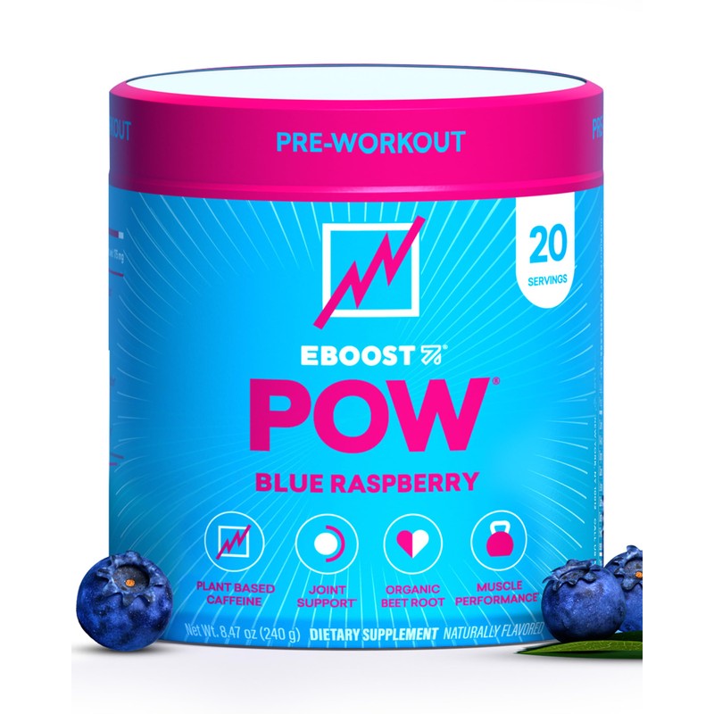 EBOOST EBOOST POW Natural Pre Workout Powder C 20 Servings - Blue Raspberry - A PreWorkout Supplement for Performance, Joint Mobility Support, Energy - Men and Women - Non-GMO, Gluten-Free, No Creatine
