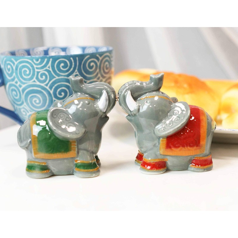 - These Circus Elephants Salt And Pepper Shakers Set is made of high quality glossy ceramic, hand painted and polished individually.