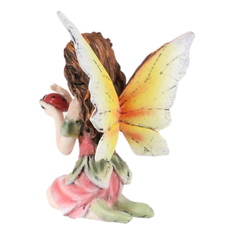 Ebros Fairy Garden Kneeling Fairy Holding Ladybug Figurine 3.25" H Miniature